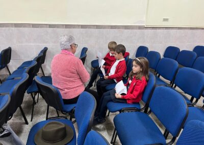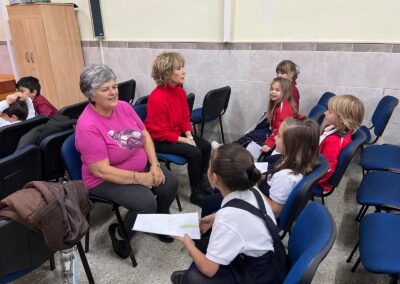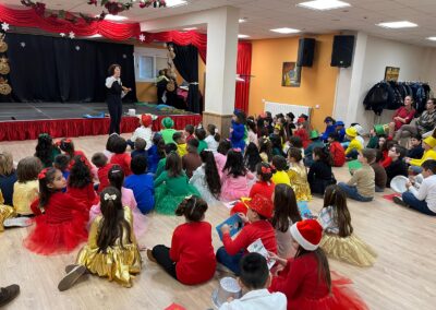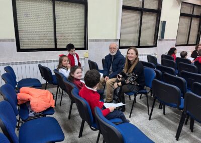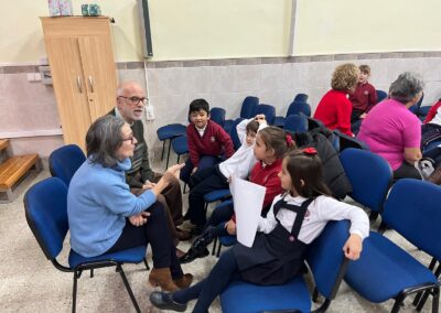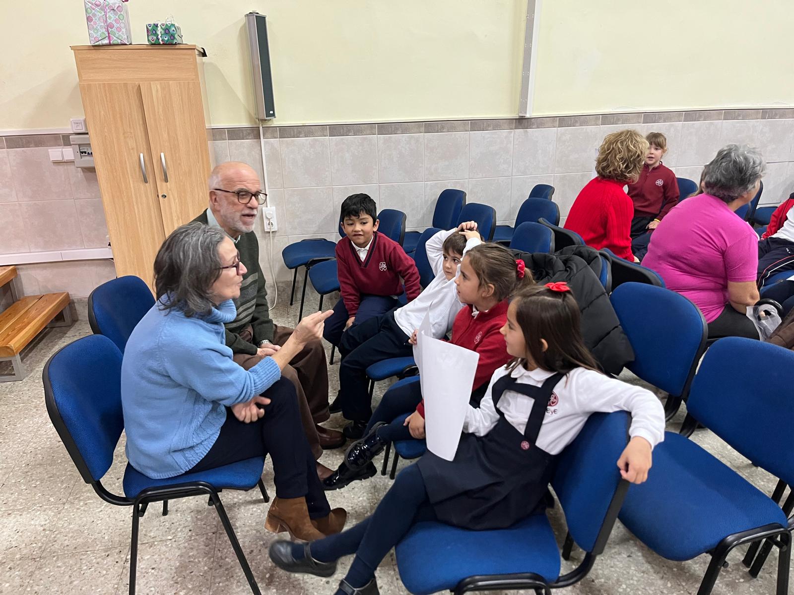 En un primer lugar recibimos su visita e hicimos un circulo de escucha con preguntas que los peques querían hacerles a sus invitados. unos días mas tarde, fueron los peques los que visitaron el centro «Margarita Salas» donde les recibieron con cuentos, poesías y teatros, finalmente juntos cantaron villancicos.